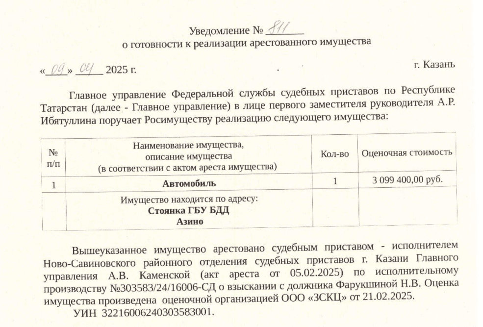 Местонахождение имущества: Респ Татарстан Стоянка ГБУ БДД Азино.